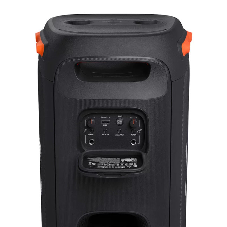 جی بی ال پارتی باکس ۱۱۰ ( JBL PartyBox 110 )که بعد از مدل ۱۰۰ به بازار آمده و میشه به چشم یه اسپیکر کامل بهش نگاه کرد ؛ باتری ۱۲ ساعته که برای شارژش فقط به ۳/۵ ساعت زمان نیاز دارید، همچنین این اسپیکر jbl اصل ضد پاشش آب طراحی شده تا زیر بارون و رطوبت شدید دووم بیاره و قابل استفاده باشد.