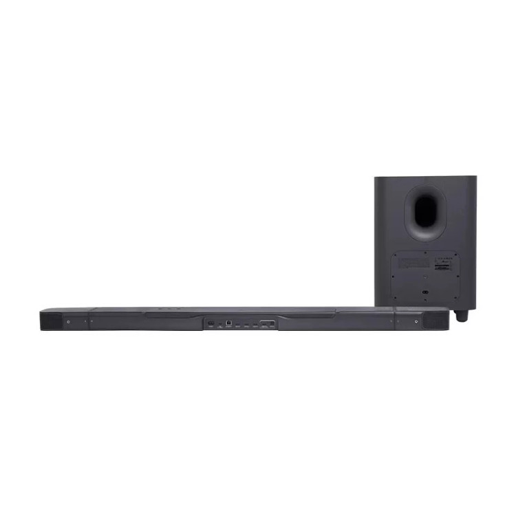 ساندبار جی بی ال مدل بار ۱۰۰۰ با قدرت خروجی ۸۸۰ وات واقعی دارای تکنولوژی دالبی اتموس , وافای داخلی و پشتیبانی از نرم افزار اختصاصی JBL ONE APP همراه با سوراند های جدا شونده ی بیسیم