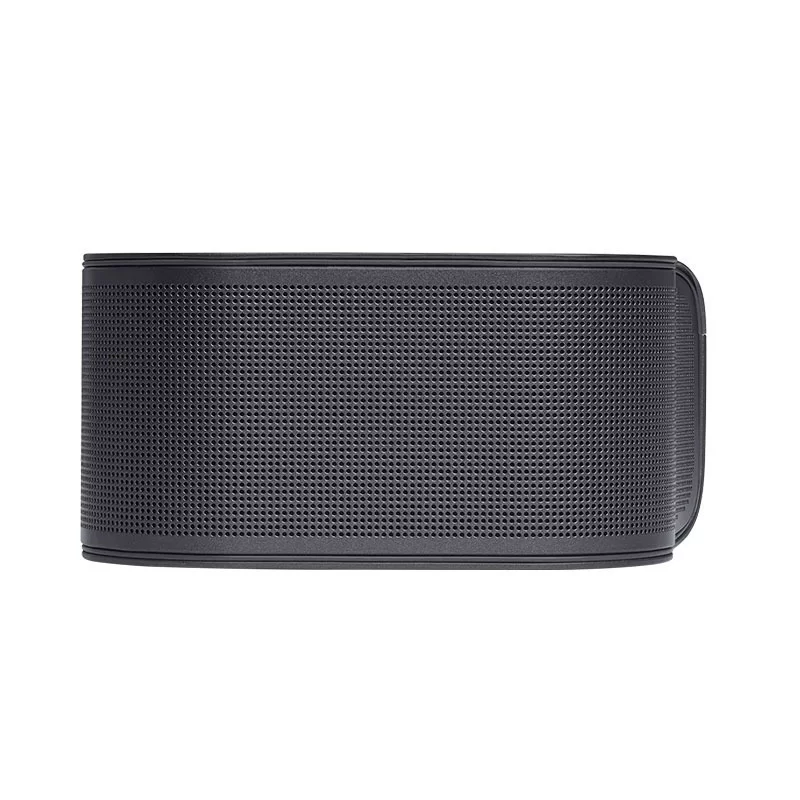این ساندبار دارای اسپیکرهای جانبی قابل جداشدن است که امکان ایجاد یک محیط صوتی فراگیر و بدون نیاز به کابلکشی را فراهم میکند. این اسپیکرها به صورت بی سیم کار میکنند و با باتری قابل شارژ، نصب و استفاده از آنها در هر نقطهای از اتاق را آسان میسازد.