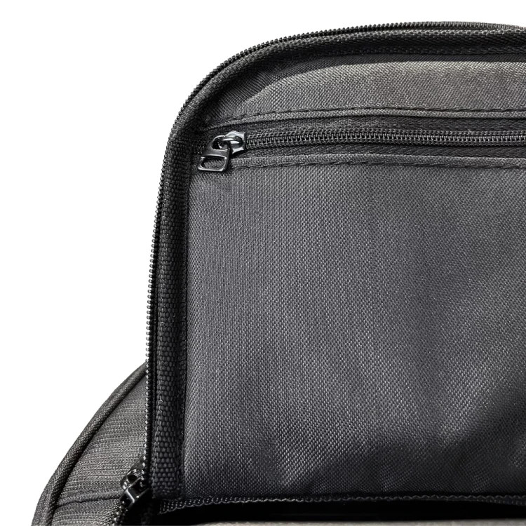 استفاده از پدهای ضربه گیر در لایه های داخلی کیف استفاده از سرزیپ های فلزی برای دوام بیشتر بند دستی با چرم مصنوعی دوخته شده برای حمل ضربه گیرهای پلاستیکی زیر برای جلوگیری از پوسیدگی و پارگی کف کیف
