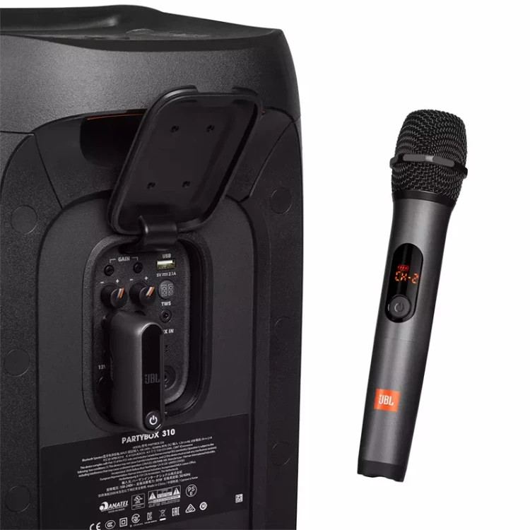 این محصول با همه پارتی باکس هایی که تا حالا جی بی ال تولید کرده کار میکنه و وقتی ازش استفاده کنید متوجه کیفیت بالاش میشید و شمارو به خوانندگی ترغیب میکنه . دانگل بیسیم میخوره به قسمت ورودی جک میکروفون و صدارو منتقل میکنه برای دوتا میکروفون تا همزمان دونفر بتونن ازش استفاده کنن . این پورت روی تمامی مدلهای جی بی ال تعبیه شده تا نقش یه اکسسوری حسابی رو برای دستگاهتون بازی کنه .