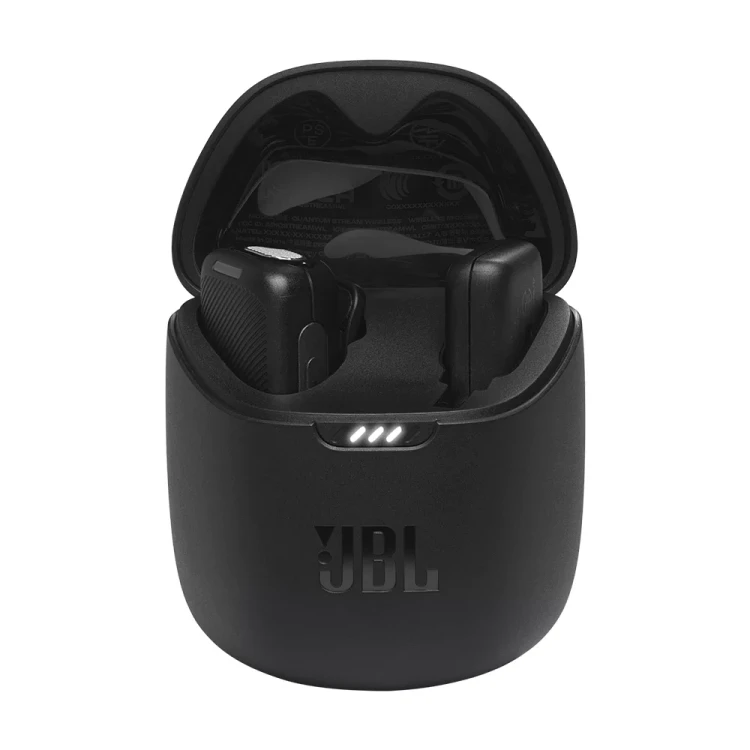 میکروفن یقه ایه بیسیم شرکت جی بی ال مدل JBL Quantum Stream Wireless با مجموع عمر باتریه ۲۴ ساعته با برد ۱۰۰ متری با پشتیبانی از نرم افزار اختصاصیه جی بی ال هدفون ساخته شده در دو جک ورودیه لایتنینگ و یو اس بی تایپ سی .