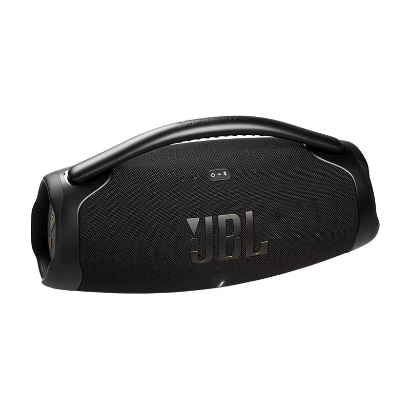 سپیکر جی بی ال مدل بومباکس 3 وای فای که علاوه بر بلوتوث دارای کانکشن وای فای نیز میباشد, با قدرت خروجی۲۰۰ وات واقعی با قابلیت اپل ایرپلی و گوگل کروم کست و پشتیبانی از دالبی اتموس , عمر باتری 24 ساعته , کاملا ضدآب و نرم افزار اختصاصی JBL one app , نسخه ارتقاع یافته ی بومباکس ۳