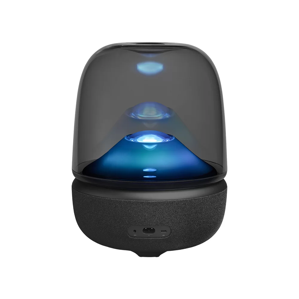 اسپیکر هارمن کاردن Aura Studio 5 جدیدترین مدل از سری محبوب آئورا به همراه نورپردازی ای کاملتر و زیباتر از همیشه با توان خروجی 160 وات واقعی، اتصالات باسیم و بیسیم و همینطور پشتیبانی از نرم افزار HarmanKardon One برای شخصی سازی صدا, مناسب برای استفاده های خانگی و کیفیتی